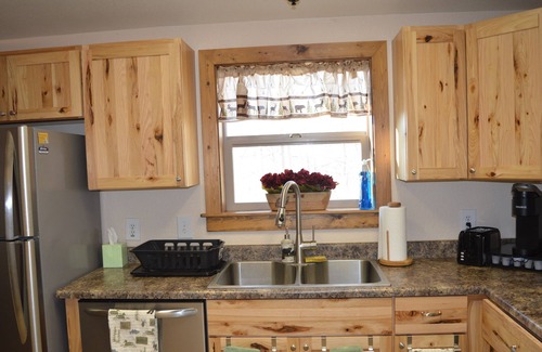 This a one story house with an open floor plan. It has 2 bedrooms and a 1 bathroom with a tub, shower combo and double sinks. Both bedrooms have a queen size bed and storage with a closet and dresser. It has a large inviting living room which seats 7. It does have a sleeper sofa to sleep 2. It is also joined with the dining room and table that seats 6. It has a nice size kitchen with a fridge, gas stove, dishwasher, washer and dryer, microwave, toaster, coffee pot and Keurig. The front patio has an amazing view of the sunrise and sunset along with amazing stargazing opportunities. It is in the middle of a national forest access way which provides walking paths that go in many different directions around the property. It sits on 1.6 acres of land so you will have some privacy space away from your neighbors. There is onsite parking with a driveway as well. We have a T.V. with Dish Satellite in the main living room as well as in 1 of the bedrooms. There are also a ton of games and dvd's to keep you entertained.