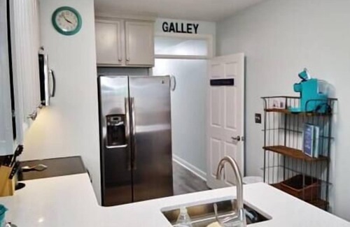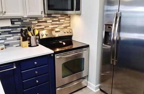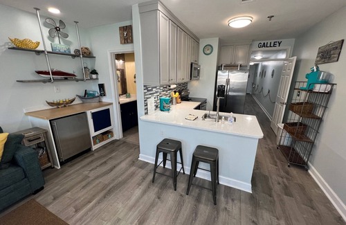The Kitchen has everything you need to prepare meals. It's equipped with dishware, utensils, appliances, etc. Also has a breakfast bar that seats 2 people. Included in the kitchen: coffee, dish soap, hand soap, paper towels, and dishwasher pod.