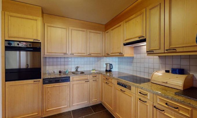 3½-room apartment on the 2nd floor, entrance with wardrobe, living room with TV, is located in Champfer. 3½-room apartment on the 2nd floor, entrance with wardrobe, living room with TV, provides accommodation, featuring Child Friendly, Kitchen, Security/Safety, among other amenities. This Apartment features Child Friendly, Kitchen, Security/Safety, to make your stay a comfortable one.