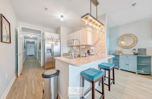 The Kitchen has everything you need to prepare meals. It's equipped with dishware, utensils, appliances, etc. Also has a breakfast bar that seats 2 people. Included in the kitchen: coffee, dish soap, hand soap, paper towels, and dishwasher pod.