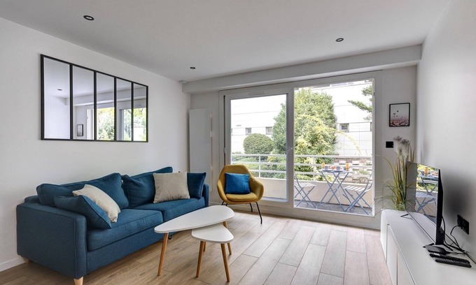 Located in Suresnes, at the gateway to Paris, the apartment is ideally situated for discovering the charm and many facets of the City of Light. The neighborhood is lively and bustling, with many shops and restaurants close by.