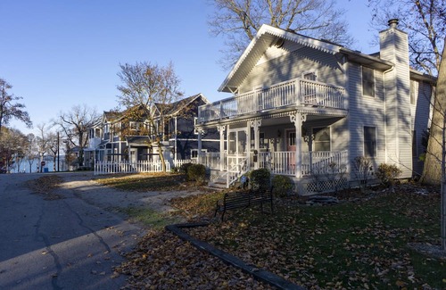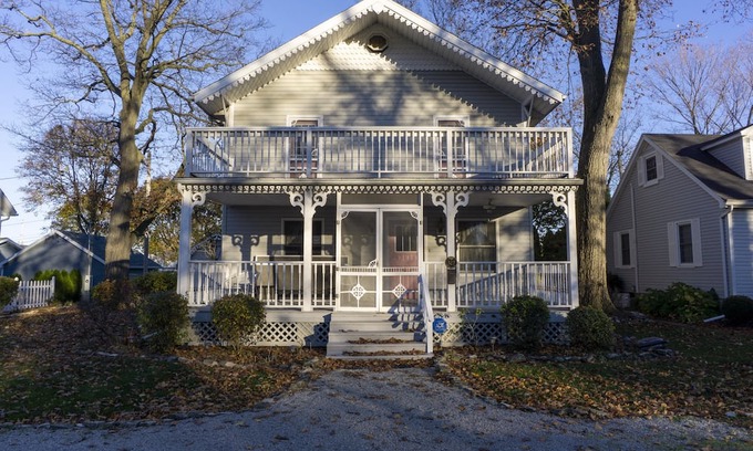 Beautiful Victorian family home just steps from Lake Erie featuring six bedrooms and three bathrooms, and central AC. This magnificent home features gingerbread and scroll, 1880's mantle, large living room, dining room, washer/dryer, television, and fully equipped kitchen. Enjoy the summer breeze on an extra-large screened front porch, with picnics on the side yard. The first-floor bedroom has one queen bed, full bath, and washer/dryer utility room provides easy access. Five second-floor bedrooms with one queen (new bed for 2020 season), three doubles, and two twin beds, and two full bathrooms with skylights, and ceiling fans throughout the home. Downstairs, a full bath features a stall shower. Upstairs the master bath features a stall shower, and a second bathroom has a tub/shower combo. Central air keeps it cool on the warmest days. One upstairs balcony on the front of the house, screened front porch, and a back porch are all perfect for gatherings. Maximum Occupancy is 12. No pets allowed.**A Lakeside Approved Owner Golf Cart is Available for an Extra Charge. This is a wonderful added amenity since there are limited golf carts to rent!