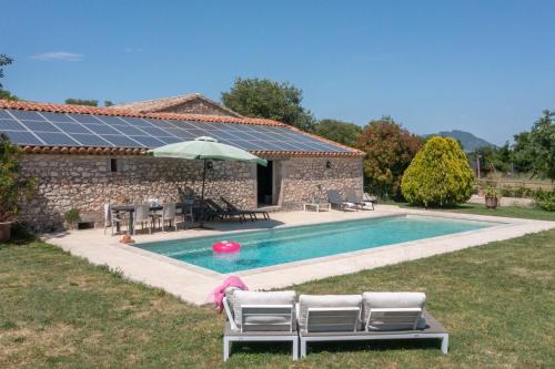 Offering a garden, 34lavit provides accommodations in Viols en Laval. Guests can go for a swim in the private pool. Montpellier Cathedral of Saint Peter is 14 miles from the villa and La Mosson Stadium is 14 miles away. Leading onto a balcony with pool views, the villa consists of 4 bedrooms. Providing a terrace with mountain views, this villa also provides guests with a TV, a well-equipped kitchen with a dishwasher, an oven, and a microwave, as well as 3 bathrooms with a shower and a hair dryer. The accommodation has a fireplace. Montpellier Zoo is 14 miles from the villa, while Agrolpolis International is 14 miles away. Montpellier - Mediterranee Airport is 21 miles from the property.