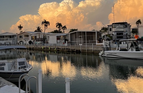 Located at Venture Out on Cudjoe Key, 20 miles from Key West this gated community offers a heated saltwater pool overlooking the ocean, pickleball, tennis, bocce, rec hall, washers, dryers and showers across the street and even a 5-star restaurant right on Cudjoe Key! A pet-friendly Resort that allows up to 2 pets, no size restrictions. Situated on a 60' wide canal it accommodates your own boat or a rental boat. The Resort has its own boat ramp, gas, wash down and parking for trailers. A 5-minute ride from Kemp Channel brings you to the Gulf side for back country exploring and fishing. With your boat parked right behind your RV, you'll be ready roll and want to come back time and again.