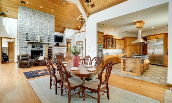 Featuring a bar, 366 Shared Acres, Lake Access Ozark Getaway! offers accommodations in Fairfield Bay. With lake views, this accommodation features a patio. Both parking on-site and free Wifi are accessible at the vacation home. The air-conditioned vacation home is composed of 4 separate bedrooms, 4 living rooms, a fully equipped kitchen with a dishwasher and oven, and 5 bathrooms. Towels and bed linen are available in the vacation home. The property has an outdoor dining area. Guests can enjoy the indoor pool at 366 Shared Acres, Lake Access Ozark Getaway!. Boone County Airport is 79 miles from the property.