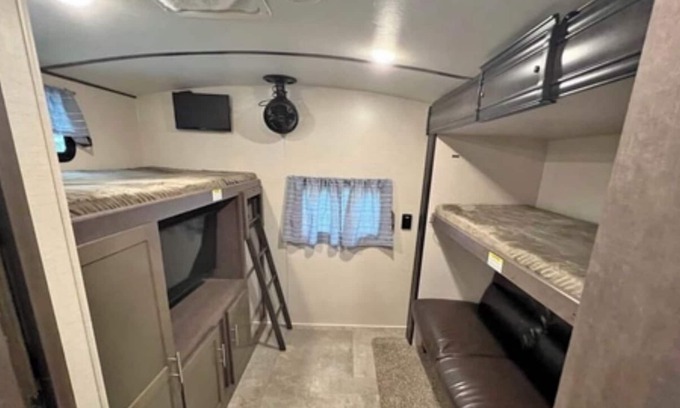 Sleeps 9 comfortably. 4 smart TVs. 2 fans in the bunk house and master. Portable dishwasher, Ice maker, linens, pots and pans are provided. Keurig coffee maker and instant pot provided. $150 delivery and set up fee up to 50 miles round trip. $50 cleaning fee.