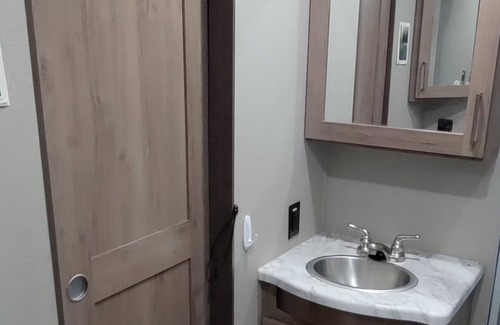 2022 Grand Design Imagine 2 room bunk style travel trailer. 4 slides provide plenty of living space and sleeps up to 6 comfortably. A 5K BTU electric fireplace, duel heated and massaging recliners and a 42 inch smart tv allow some of the comforts of home after a long day. Extra TVs can be provided for the master and guest bedrooms if required. There's an out door kitchen that includes a 2 burner stove, cabinets and a refrigerator. The entire home is fitted with bluetooth technology that controls the lights, slides, awning and and radio all from your phone by scanning the QR code. If needed can be delivered to local camp sites for $100 up to 50 miles and $1.5/mi up to 70 miles. IF YOU ARE MILITARY AND REQUIRE LONG TERM SUPPLEMENTAL HOUSING PLEASE MESSAGE FOR SPECIAL RATES AND OPTIONS.
