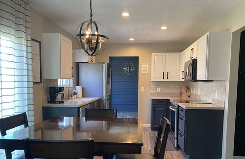 Come and enjoy this beautifully finished home in West Omaha. Two living rooms on the main floor will keep everyone entertained, some could be relaxing in one room while some are playing games in the other. Newly updated kitchen and dining room are perfect for preparing and enjoying all of your meals. All three bedrooms and two full bathrooms are on the second floor providing extra privacy for anyone that needs a good nights sleep. The large primary suite has a king sized bed with an attached full sized bath including a dual vanity. The second bedroom has a queen sized bed and the third has a cozy full sized bed. Washer and dryer are also conveniently located on the second floor. The adorable front porch is perfect for sipping your coffee in the morning or watching the kids play at the newly renovated park across the street. In the fully fenced oversized backyard you will find plenty of room for all of your backyard games and activities. Outdoor dining area complete with patio lights will let you enjoy the outdoors well after the sun goes down.