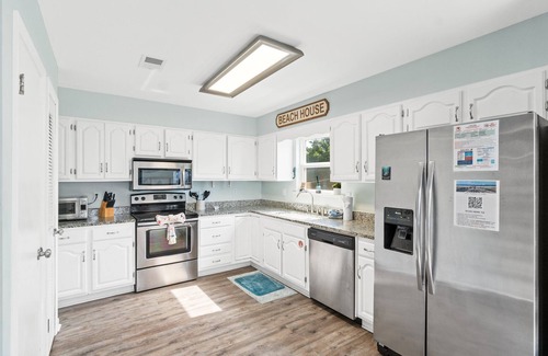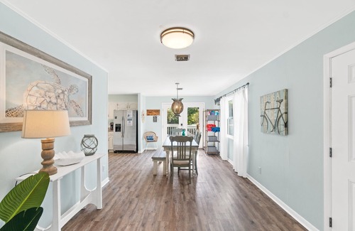 The beach is a short walk away for sandy toes and salty air. Or take the neighborhood friendly golf cart, provided complimentary, to haul all the necessities to the beach access.