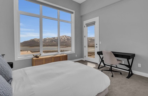 This chic getaway is located in a quiet, newly-built neighborhood on the hillsides of Hideout, just across Jordanelle Reservoir from Park City proper. Nearby, you’ll find plenty of hiking trails to stretch your legs on, including the Ross Creek Trailhead, just over a mile away from the home, and the SkyBridge North Trailhead, about 3 miles away. For those who love to spend some time on the green, Outlaw Golf Club is less than a mile down the road.
