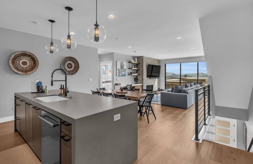 Step into a chic hideaway in Hideout with views that you’ll never forget! A perfect home base for your mountain adventures in Park City, this modern and stylish 3 bedroom, 3.5 bath townhouse is spacious enough to sleep up to 8 guests. Located just a 15-minute drive from Park City, this chic multi-story getaway is perfect for anyone who wants to stay out of the hustle and bustle of Park City proper but still soak in the sweetness of the cool mountain air.