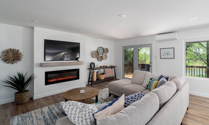 Enjoy endless outdoor activities such as fishing, swimming, wakeboarding, or boating with loved ones. Relax on the back patio and balcony, enjoy a quiet evening by the outdoor fire pit, or watch the big game. This property is located about an hour from the Frisco/McKinney area on the Texas side of Lake Texoma.