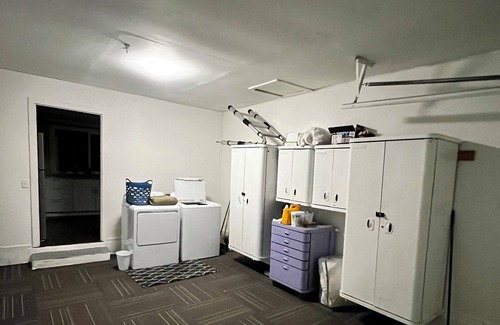 Where country meets city! Close to all the Broken Arrow hotspots such as Rose District and Bass Pro Drive. This newly renovated single family home is sure to accommodate spaciously. Patio space featured up front and out back for a morning coffee or an evening unwind. All new appliances as well as on-site laundry. Garage converted into a multipourpose space. Large television available for streaming your favorite shows as well as comfy couches to sink into. King size bed with plenty storage in front master. Full bathroom complete with tub and walk-in shower. Two guest rooms, one with trundle bed and the other a single twin along with plenty space for storage. Kitchen features butcherblock countertops looking over the fenced in backyard. Cozy all the way around! Also, don't mind the neighbor's cats that like to say hello from time to time, they are super friendly and love kids!