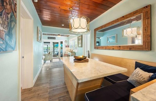 No expense was spared in providing a great stay at this unique seaside cottage. The interior of the home is tastefully designed and furnished. The vaulted ceilings and expansive windows let in abundant light to the more than 1,800 sq. ft. of generous living. This unique property boasts a separate living/dining room area, a cozy TV family room, a fully-stocked gourmet kitchen with stainless steel appliances, and three large bedrooms with a King and two queen-sized beds. Each of the three bedrooms conveniently features full en-suite bathrooms for privacy and convenience during your stay. Whether you are searching for an intimate place to get away or the ideal location to vacation with family or friends, our Key Largo cottage by the sea is well-equipped to guarantee an exceptional experience you won't soon forget!