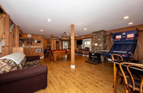 Heartstone's lowest level is the best place for the kids and adults to play pool, air hockey, basketball game, darts, ping pong and Wii game console with its own separate television. Here you will find a 3rd bedroom with a Queen bed with a television, an electric fire place to keep your toes warm and an attached full bathroom with adjoining door to the game room. The game room has a wet bar with mini fridge for sodas and brewskis. A sleeper sofa and a daybed provides additional sleeping accommodations in the game room, while you watch television.