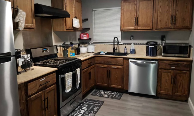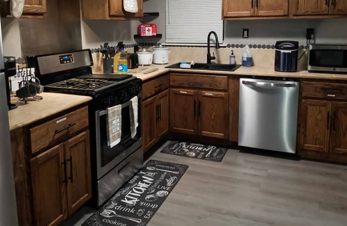Forget the hotels. Stretch out and relax with the whole family at this cozy comfortable 3 Bedroom 2-1/2 Bath home. Neighborhood grocery store within a mile. Also within 5 miles of Walmart and several Restaurants! Forget the hotels. Stretch out and relax with the whole family at this Cozy Comfortable 3 Bedroom 2-1/2 Bath home. Amenities include cleaning supplies, trash bags, bed sheets, pillows, cooking utensils in the kitchen, dishes glasses, mugs, pots and pans, keurig coffee maker, can opener, iron and board, hair dryer and more...This home is loaded with amenities and I'm sure it will supply your needs.