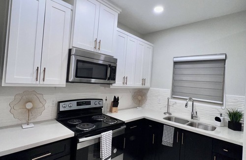 This spacious 3 bedroom 2 bath modern apartment complex is fully furnished and includes an open concept kitchen and living room