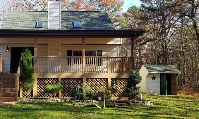 3BR in Jim Thorpe w/Huge Backyard and Game Room is located in Jim Thorpe. 3BR in Jim Thorpe w/Huge Backyard and Game Room provides accommodation, featuring Pool, Balcony/Terrace, Skiing, among other amenities. This House features Pool, Balcony/Terrace, Skiing, to make your stay a comfortable one.