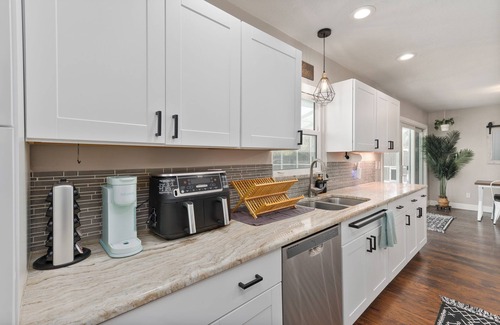 Dishwasher, Refrigerator, Freezer, Pantry, Stove, Microwave, Drip Coffee Maker, Keurig Coffee Maker, Silverware, Drinkware, Coffee Mugs, Cookware, bottle opener, can opener, wine glasses, Cooking Utensils & Pots/pans provided.