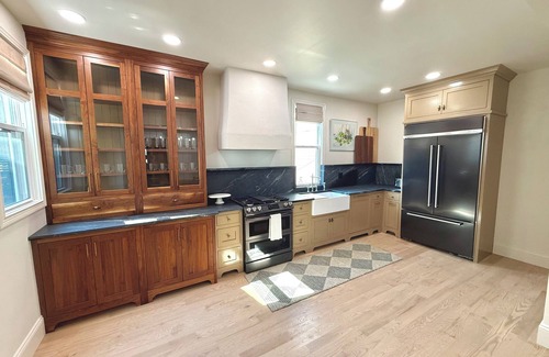 A chef’s kitchen with Italian soapstone countertops, custom cabinetry, and pro-grade appliances