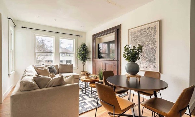 This 3-bedroom apartment is the perfect launch pad for exploring NW Portland. Just steps from NW 23rd Ave, you’ll be surrounded by top-rated dining, boutique shopping, and walkable charm. Inside, enjoy vintage character with modern comfort—fast WiFi, Smart TV, full kitchen, and comfy sleeping arrangements for families or groups. Perfect for longer stays or weekend escapes in Portland’s best neighborhood.