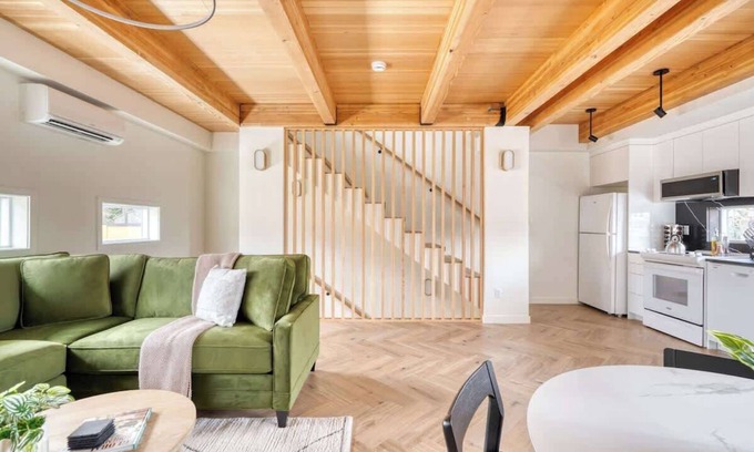 Stay in Portland’s Alberta Arts District in this 3BR townhome with soaring ceilings, designer finishes, and two Juliet balconies. Walk to cafés, parks, and boutiques. Features a chef’s kitchen, patio, Smart TV, and in-unit laundry. Traveling with more guests? Book the separate downstairs mother-in-law suite to make it a 4-bedroom, 2-bathroom full-home rental with two private entrances.