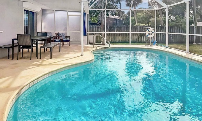 Whether you're a family looking for a safe, quiet and relaxing pool house that's close to several kid-friendly attractions or a small group looking for a private poolside escape in sunny Florida — we've got you covered! Your Melbourne home-away awaits you. Whether you're seeking adventure or relaxation, or after-work respite, this home is perfect for families, groups of friends, or couples looking to escape, we invite you to indulge in the best of Florida's coastal living. Sleeps 6-7.