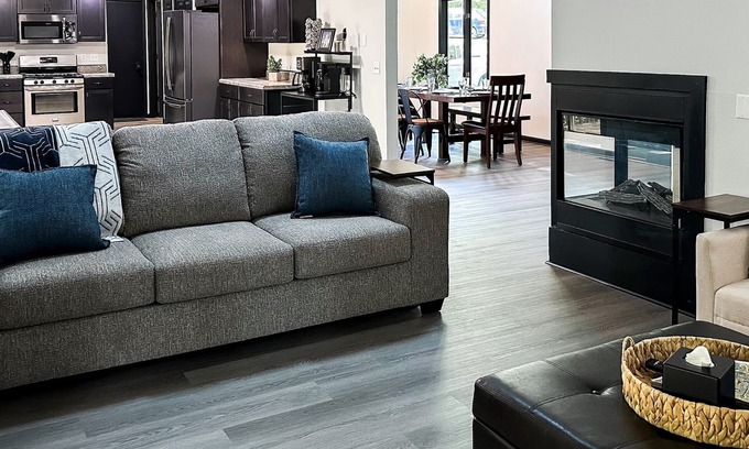 Outside, gather around the fire pit to roast marshmallows and make s'mores. Explore the nearby scenic trails, or visit one of the three parks within 3 miles, offering river views, nature reserves, and playgrounds for children.
