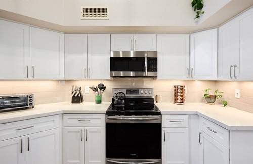 No Rental Tax on 30+ night stays! Beautifully Upgraded Single Level 5 bedroom, 3.5 bathroom house in an excellent Scottsdale Location by Seasoned 5-Star Hosts. You'll love the 3 Master Bedrooms, each with en-suite bathrooms, Split From Each Other, 2 King Size Beds, excellent for Families! This peaceful location offers mountain views and terrific hiking trails,10-20 minutes to the Scottsdale Hot Spots: TPC, Spring Training, Old Town, Scottdale Quarter, Kierland, entertainment, world-class medical~Mayo Clinic, Envita, More! Professionally Designed and Decorated with ALL NEW furniture this home has it all: 6 New Smart TVs, Cable TV, Work Space, Fast WiFi, Game Room, Gym and Awesome Resort-Like Backyard complete w/Pool that can be heated, New 6-Person Hot Tub, Ping Pong, Fire Table, Turfed Lawn and Night-Lit covered patio with plenty of seating and loungers to soak in the warm AZ rays. Grill steaks on the New Gas Grill, unwind playing Corn Hole, Xbox, Foosball and arcade games. Ask Host for the Short Video Tour and SUV rental deal.