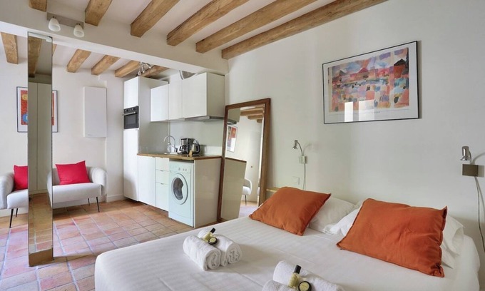 3min Notre Dame of Paris | Studio is located in Sorbonne. 3min Notre Dame of Paris | Studio provides accommodation, featuring Bedding/Linens, Wellness Facilities, Internet, among other amenities. This Apartment features Bedding/Linens, Wellness Facilities, Internet, to make your stay a comfortable one.