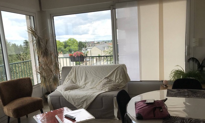 My apartment is fully equipped including bed linen and toilet. Bedroom, living room, kitchen, bathroom, terrace. It enjoys a panoramic view of Laval and a bus stop at the foot of the building.