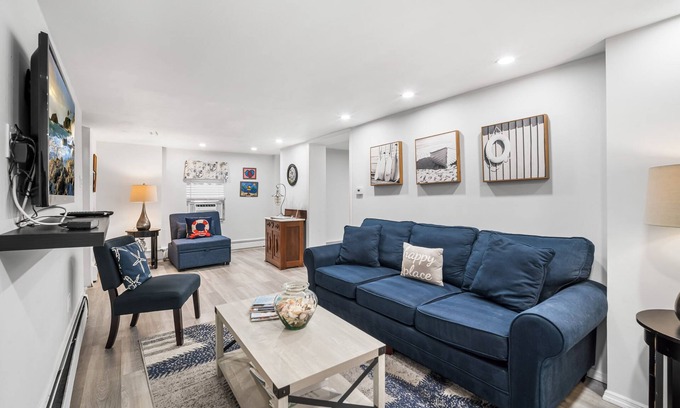 This large one bedroom apartment is located on the lower level of Americana... By the Sea. This home is the 3rd House from the Beach and Boardwalk. The unit is available for weekends or monthly lease. It features a huge patio with views of the Boardwalk and Beach, full size washer and dryer, cable TV and WIFI.