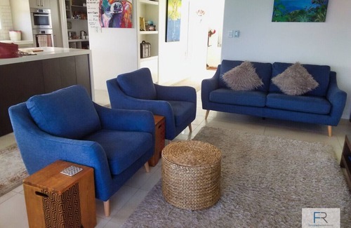 This single-level top floor apartment has open plan living, kitchen and dining, with spectacular ocean views. The well-equipped kitchen is complete with a microwave, dishwasher, full oven, stovetop, kettle, toaster, and a coffee machine. Further to this, guests will enjoy opening up the glass sliding doors next to the lounge area, which open to a balcony with glass balustrade for unobstructed sea views.