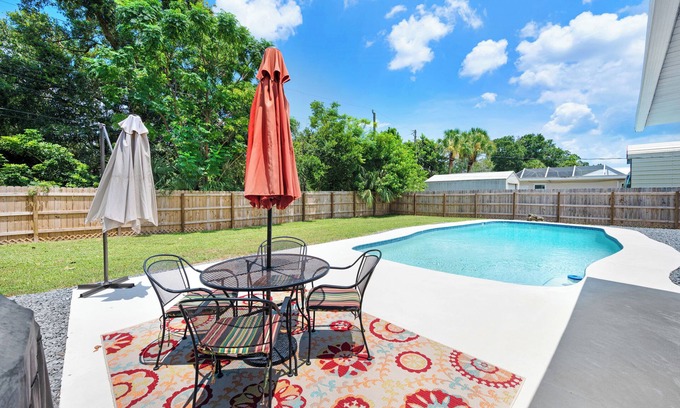 Our little slice of paradise is centrally located in Brevard county. Relax in the pool or hammock or explore all that the surrounding area has to offer. 4 bed, 2 bath. 1 King, 2 Queens, a Bunk Bed, and a futon. Come and watch the rocket launches right off the river. Steps to the Indian River Lagoon. Perfect place to stay for the Space Coast Marathon, Triathlons, 5Ks in Cocoa Village. A 20 minute walk to most start lines set in Cocoa Village.
