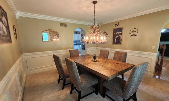 Bring your family and furbabies (crates provided on each floor) and enjoy this country home located close to everything you need.