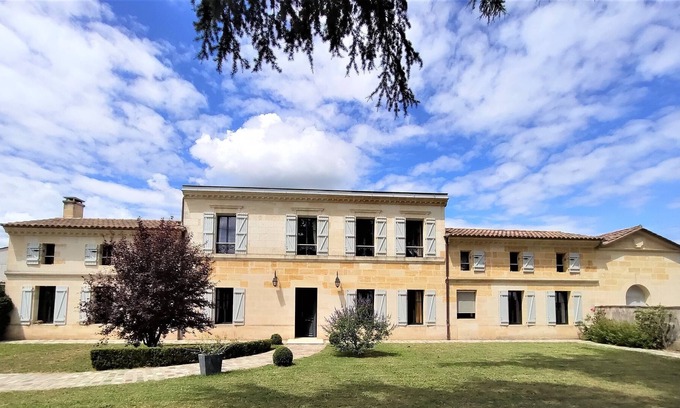 Producers of Saint-Emilion Grand Cru, we invite you to discover the life of the Château by renting the old residence of several generations of winegrowers. Completely renovated in 2012, classified 4 stars in June 2019 with 300 square meters of house and a large garden it is an ideal place to meet with family or friends to discover the region. During your stay, a visit of the property will be offered to the whole group with a gourmet tasting and a virtual reality tour!