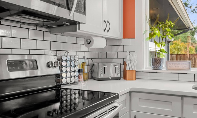 The kitchen is equipped with most of things you would need. As someone who has spent a lot of times in airbnbs, I am always most let down by the lack of things available to me in a kitchen. I.e never having a decent blender, no spices, not enough dishes. I have tried my best to make sure you have all the basics, and then some. There is a full coffee bar; coffee, creamer, sweetener, teas. You will also find things for a wine night or a little cocktail mixing.