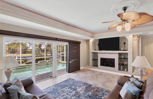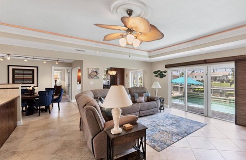BD: 4, BT: 3. Spacious villa with private pool, dock, and canal access. Large living room with flat-screen TV. Kitchen for gourmet chef. Sparkling pool with western exposure for sunsets. Garage available. No pets. Pool heat and BBQ use at additional cost. Welcome pack provided. Free parking and WiFi. Sleeps up to 8. Optional pool/spa heating. Close to Gulf Coast beaches and attractions. Professional Vacation Home Rental Agency with enhanced cleaning measures