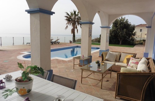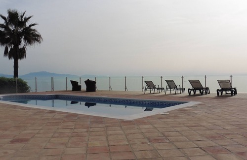 Mar Vista is located on a cliff with fantastic sea views of the Mediterranean and the Costa del Sol. A beautiful deck on the edge of the pool and property make you feel like you are on a ship at sea. The development of La Paloma is an exclusive estate and has 24 hour security. The 4 bedroom villa benefits from its own 8x4m private pool with a shallow end for the children. The villa is elegantly furnished, air conditioning/heat throughout, wireless Internet (broadband) access and satellite TV. 800m to the beach and a 5 minute drive to the marinas of Sotogrande and Duquesa which have a wide variety of restaurants, bars and shops. La Paloma is located 50 minutes from Malaga, 30 min from Marbella, 1 hour from Jerez. 2 hours from Seville and 2 hrs. from Granada (excellent skiing in the winter at the Sierra Nevada). For the golfers you are spoiled with Valderrama, Sotogrande, San Roque (2 courses), La Reserva and Almenera within a 10 minute drive.