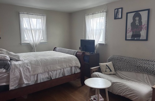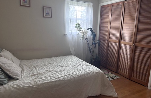 4 bedroom 1 1/2 bath house directly on the Cornell bus route. 4 queen beds sleep 8. Two large twin sized couches could stretch occupancy to 10.