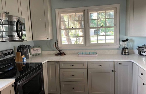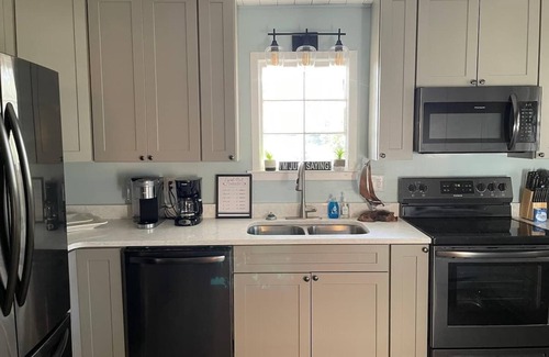 Sleeps 16, fully updated kitchen, beautiful marsh views and 2 master bedrooms. This home comes with a VSee box where you can watch every football, baseball, and soccer game etc no matter where it is being played along with Sports PPVs like boxing, all for FREE, also includes about 3000 channels like your hometown local news, and countless movies on demand, again all for FREE! Kitchen has Quartz countertops and black stainless appliances overlooking the beautiful marsh front with TVs in 3 of the 4 bedrooms and 50" for Living Room that has that VSEE Box and all the channels. Sleeps total of 16 with 2 master bedrooms one upstairs one downstairs, 3rd bedroom with private bathroom access that sleeps 6, 4th bedroom also sleeps 6 and has access to 4th bath as well. Balcony off the 2nd story master bedroom has a beautiful marsh view, golf cart and bike rental available with nearby company, all of downtown it is legal to drive golf carts. Get ready for a peaceful family stay only minutes from ferry to Cumberland Island, 2 boat ramps and downtown St Marys! Brand new kitchen, quartz countertops and SS appliances installed 2022. The Second oldest City in the US awaits. This is a place to make good memories that last forever. 45 mins to Jekyll Island and Fernandina beaches. 1 hour to Jacksonville beaches.