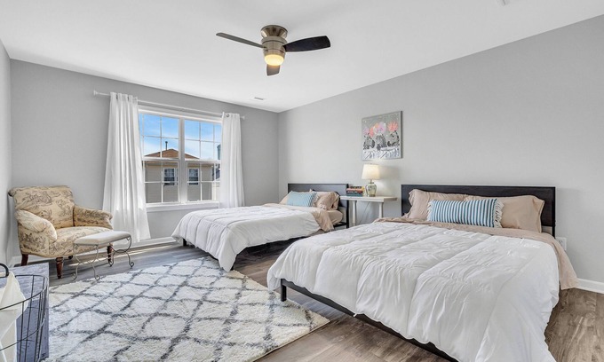 Discover the beauty of Keansburg from this 4-bedroom house. With 1 king bed, 3 queen beds, and 2 twin beds, guests will have plenty of space to relax. The property features heating, WiFi, an iron, a hair dryer, and AC for your convenience. There are 4 bathrooms equipped with towels and bathroom essentials. Enjoy all that Keansburg has to offer when you stay at our place. Only 1 block from the Free public beach. Enjoy Waterpark views right from your balcony, which is located on each floor. Lots of restaurants in the area. And peaceful, relaxing evenings with the ocean breeze.