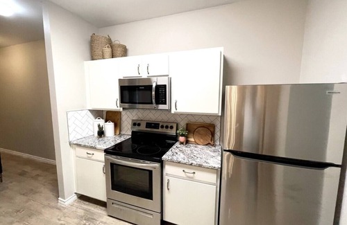 The unit is within walking distance to the OSU campus and many attractions/restaurants. There is a parking garage attached to the unit and 4 parking passes are provided for your stay. There is a bus service in Stillwater that picks up just outside the parking garage of the condo building; search the internet for "Big Orange Bus" for more info.