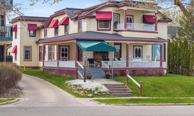 The 1896 Charlevoix Lakeview Home in downtown Charlevoix is the perfect Northern Michigan getaway. This first floor portion of the home features 4 private bedrooms, all with en suite bathrooms, a large living area with spectacular views of Lake Michigan, and a large wrap-around porch overlooking the sunset. Its central location is just steps from Charlevoix beaches, restaurants, shops, and other attractions.