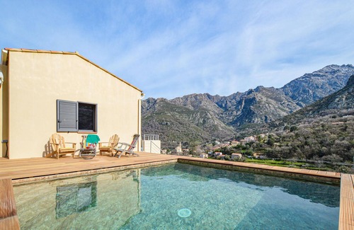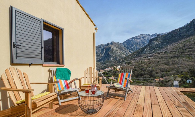 Vacation home with private and panoramic views in Feliceto, 15 km from Ile Rousse. This beautiful vacation villa has two terraces, ideal for enjoying the sun or shade as you wish. The first terrace with panoramic views and comfortable armchairs overlooks a breathtaking landscape, and from the second you can go for a walk in the countryside straight from breakfast.