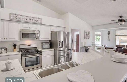 This tremendous house in Tucson offers 4 cozy bedrooms, including 2 queen beds, 3 full beds, and 1 child bed. With 2 lovely bathrooms featuring a bathtub and hair dryer, guests will feel right at home. Enjoy the convenience of amenities like WiFi, a washing machine, an elliptical machine. This gorgeous property is the perfect spot for your next getaway. It's easy to see why you'll be able to unwind at our place.