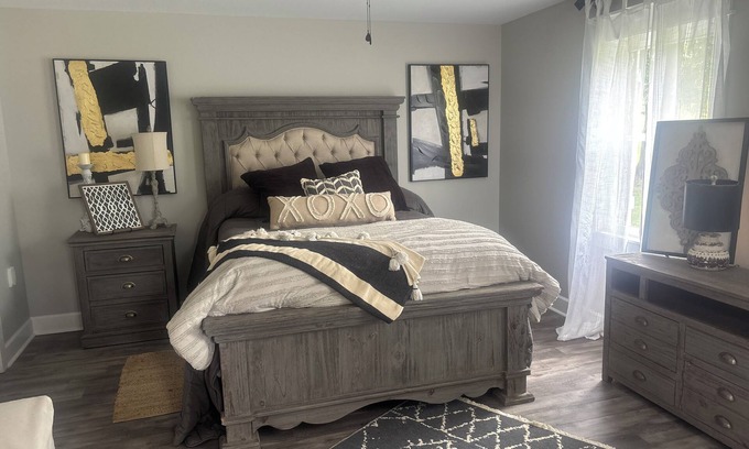Get ready to relax in this 4-bedroom house in New Albany. This charming property features 2 queen beds and 2 full beds, perfect for a group getaway. With amenities like heating, AC, and a jetted bathtub, guests can unwind in this soothing space. Enjoy your time in New Albany at our marvelous house.