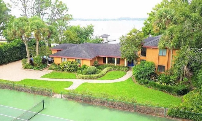 Nestled on the shores of Lake Down, the northern-most lake of the Butler Chain of Lakes you will find this secluded, privately gated 1+ acre immaculately maintained custom estate. The 5 BR, 3.5 BA, 3, 342 SF open living space home was designed with sleek details, clean lines and an abundance of windows to naturally embrace the lake views and spectacular sunsets from almost every room. Upon entering the gate you are gently guided via a brick paver drive, lined with lush landscaping that can only be compared to that of a 5-star resort, to the home's majestic facade. Invite family and friends over for a friendly tennis match on the private court followed up by an evening boat tour on the lake. The dining room/family room combo features separate wood burning fireplaces and 17 over-sized windows. Viking appliances, the fridge is a brand new Samsung, are the centerpiece of the modern kitchen with granite counter tops, island and breakfast bar. The 390 SF Master Bedroom Suite features a floor-to- ceiling Florida room retreat with patio access. The second floor, accessed by spiral staircase, features 2 bedrooms and a full bath. The home also includes a bedroom suite with separate entrance making it perfect for out of town guests to feel welcome. The community also features a deeded private boat ramp and is conveniently located near world renowned shopping, fine dining, top-rated schools, major roadways and local area attractions. Most recent updates include new lakeside windows and new septic drain field. Houzlet publishes listings on Vrbo; which in turn, allows tenants to instantly rent seasonal rentals. Houzlet’s properties are managed by licensed real estate agents. Although the property is an instant rental, it’s possible there can be another pending application. If the home is not available, we can offer you another suitable option or you can cancel for free.