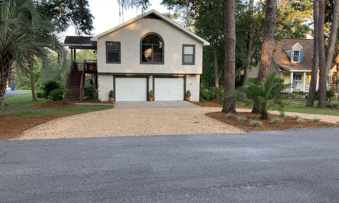 This home features, 2 separate living spaces under 1 roof. The Ground floor features a full 1 bedroom apartment. The Second floor features 3 bedrooms, 2 bathrooms, large kitchen, dining room, and a living room that can accommodate everyone. Up to 10 Guest can sleep here comfortably. And well within biking distance to the Shops, Beaches, and the Pier. We are within walking distance to the World Famous Southern Soul BBQ, and Redfern Village.