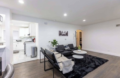 4 bedrooms, 6 beds, 2 full baths, and open basement loft. Your family of 10+ persons will be close to everything when you stay at this centrally-located place. Gym available onsite with treadmill and free weights. This property is centrally located 20 minutes from O'Hare (ORD) Airport and 20 minutes from Downtown Chicago. Located off of I-94 with direct access to downtown. Minutes away from train station (CTA Yellow line train).